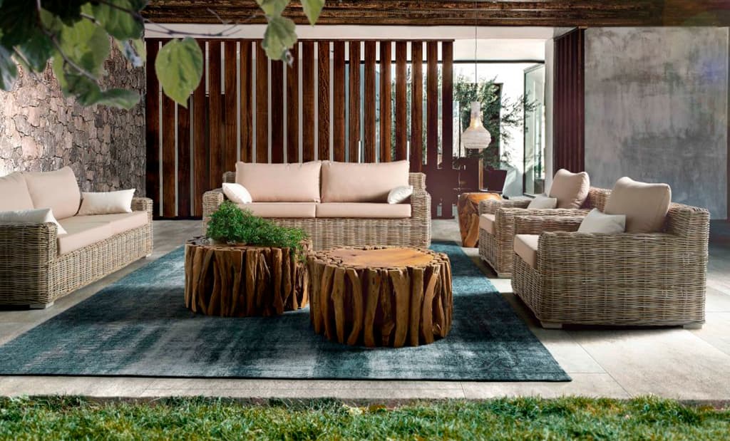 Los muebles naturales elaborados en fibras como ratán, mimbre o bambú crean ambientes acogedores, frescos y llenos de personalidad. Son perfectos para terrazas con estilo bohemio o mediterráneo, donde prima la conexión con lo natural. Además de su belleza artesanal, ofrecen ligereza y un encanto atemporal que transforma cualquier rincón exterior.